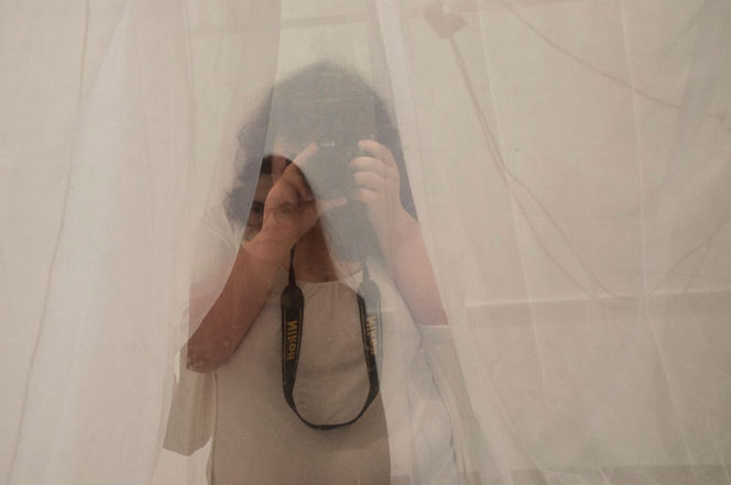 1 + 1 is an interactive / immersive performance in which two participants are on their way to a meeting, without their knowledge. When entering the room, they are both on the other side of a canvas tunnel. The great height of this space creates an oppressive feeling at the beginning of the tunnel. As the participants follow the tunnel, this dark, oppressive part changes to a light, almost heavenly environment. Because of their presence, the lights in the room changes and in this way the participant gives feedback to let the other participant know that the/she is being noticed. This is also to let the other participant know that something or someone else is in the same space. When both participants meet in the middle, they face a plate that is initially a mirror. After a while this mirror changes into a window and the meeting takes place.