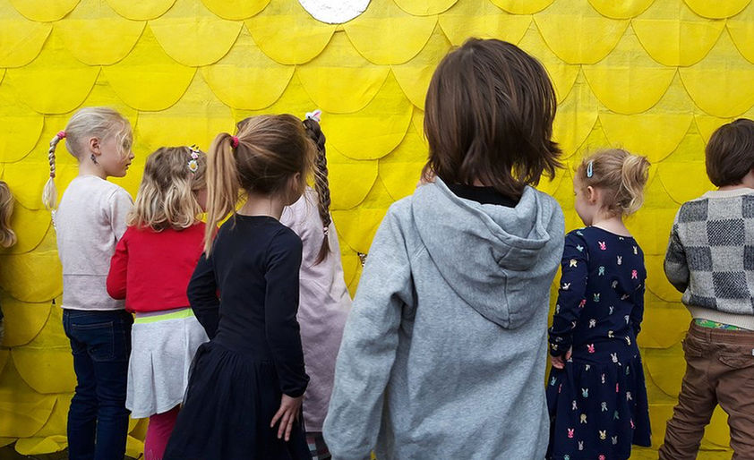 We have created the installation Bubbel for the children's festival 2 Turven Hoog. The aim is to give children an immersive experience in which they can discover for themselves what 'the big yellow being' can and does do. Because there is a narrative in the experience, we take the children into an exciting and surprising experience. In order to encourage the parents/guardians of the children to participate, we also have a task to perform for them. In this way the parents can use water spray to wet the creature from the outside, otherwise, the large yellow creature dries out.